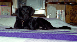 - • On one trip when we were driving home from New Mexico, he got uncharacteristically quiet and was in the back of the van. When I checked on him and Penny, he had chewed a hole in the corner of my purse to get to a package of peanuts, which he throughly enjoyed.
