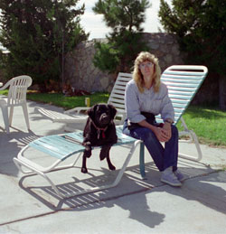 - • One of our neighbors in Houston (David & Carol) had Abigail (Abby) a little white Maltese snowball of a dog who had no buddies at home to play with, so loved to play with Midnight. If their garage door was open and she wasn’t outside, he would go inside and scratch on the door to see if Carol would let her out to play. Carol said she still came looking for him after we moved and would go to our house sniffing around for Midnight.
