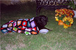 The following is from Elnora’s handwritten notes of Saturday night - Sunday morning: (the times are adjusted for the time change this evening) About 2 am Midnight comes into our bedroom to sleep in the corner, breathing very rough. I give him an antibiotic and go into the kitchen to get some vitamin C. He comes into the living room and throws up (yellow bile). That seems to help his breathing some. I’ve got the vitamin C in my hand, so I go ahead and give it to him. He gets up a goes to the door, so I let him out in the backyard. (The grass is wet from dew). Midnight lays down on the wet cold grass, so I get blankets; pull him onto them and cover him up. (It’s in the low 50's and windy). Between 2 am and 4 am he slept (and laid) quietly on the blanket. I didn’t stay out with him, I thought he would rest better if I wasn’t there.