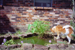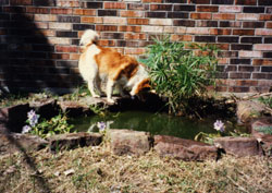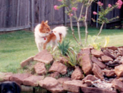 Another favorite of hers was to stand in the shallow fish pond and catch goldfish and put them on the bank. She would stand in the water for hours wagging her tail the whole time. As you could expect, the pond water made her smell like an old dish rag, and she acquired another nickname, “Stinker-pup”.