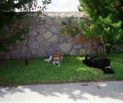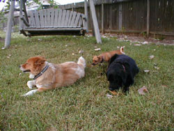 She quicky became the alpha dog, and protected Midnight and even chastised him if he got in the way. As long as strange dogs didn’t sniff her butt or challenge her they were OK, but Penny was always ready for a good fight, no matter how big or how many other dogs. Never a damaging fight, just pin them down and give them a good scare. She also liked to flirt with Angus the Rottweiler next door.