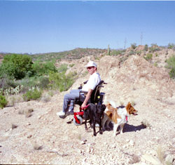 February 24, 2007 Their was a serious brush fire on the southwest side of our subdivision. The approaching fire and heavy smoke that was coming towards us due to very heavy winds forced a total mandatory evacuation of the subdivision. So we all got into the van and headed over to our friends “Bill & Mary” home and stayed there for a few hours until the authorities allowed us to return. After this incident, almost every time Penny went out the front door, she would pause, look and sniff into the wind for smoke; then Elnora would say “No smoke”, and then she would proceed with her exit.