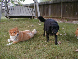 Walks to the bayou and around the neighborhood were a regular treat. Penny and Midnight made a regular visit on (Smoky) a kitten who was a friend even through his adult life. This can be seen in the video.